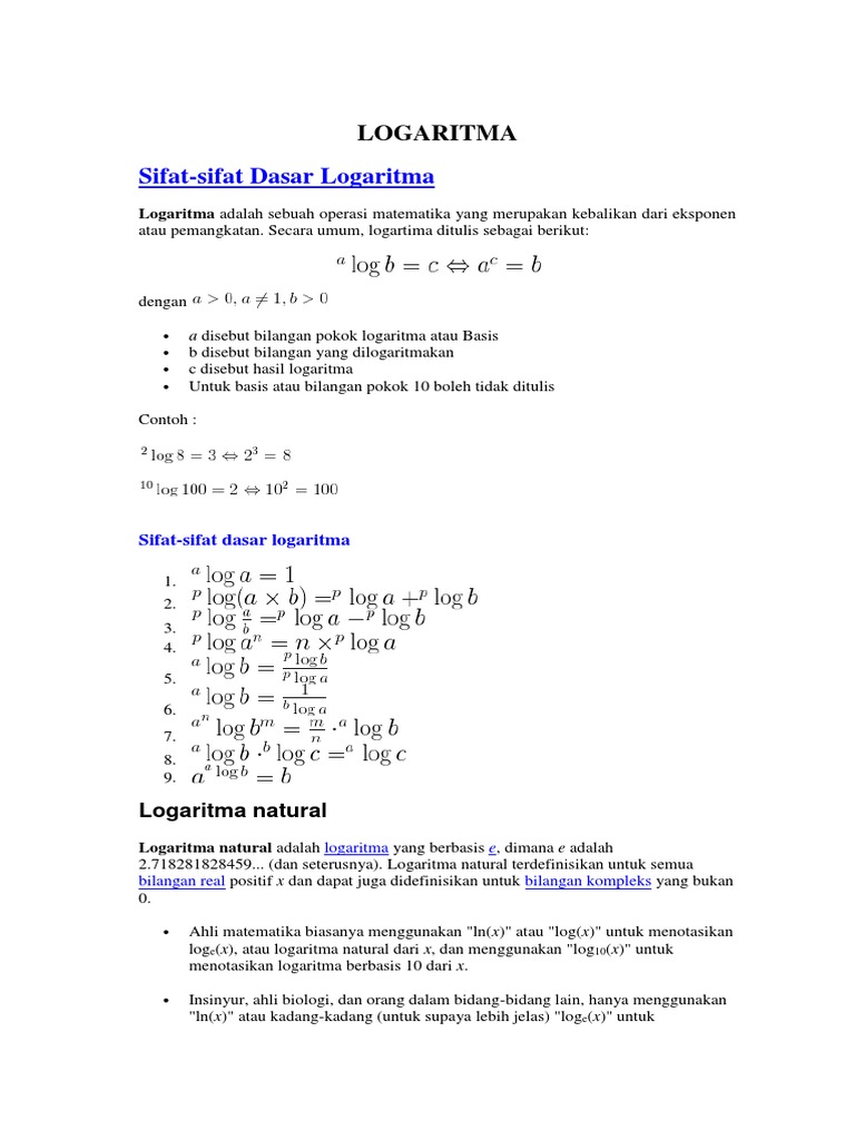 Logaritma Adalah Pengertian Sifat Rumus Persamaan Contoh
