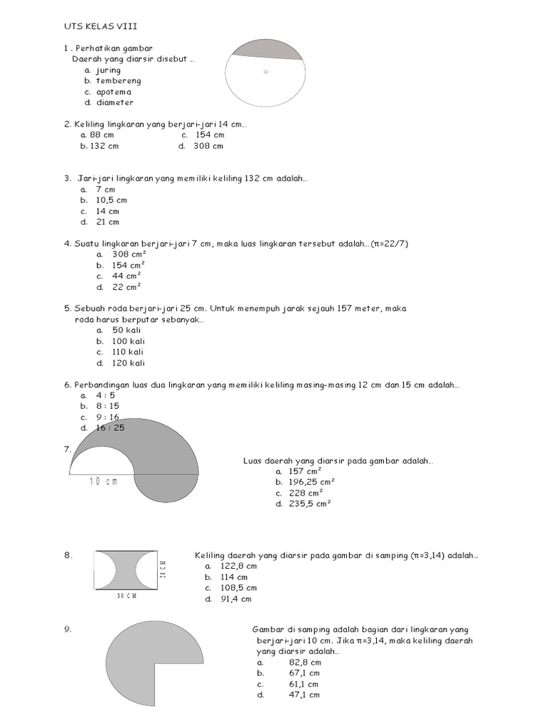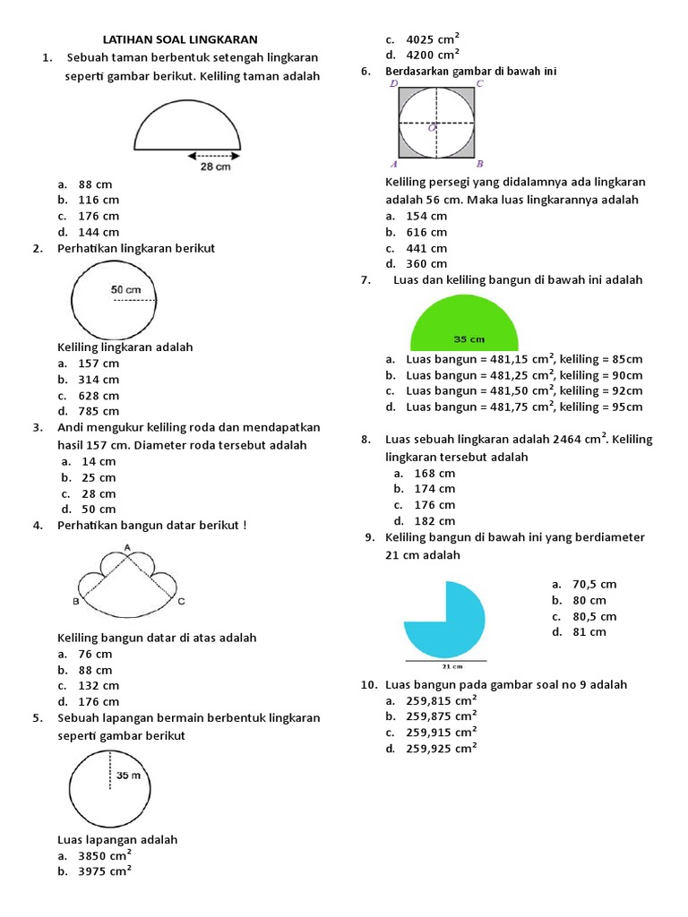 Soal Matematika Kelas 6 Kd 3 4 Dan Kd 3 5 Keliling Dan Luas Lingkaran Sekolahdasar Net